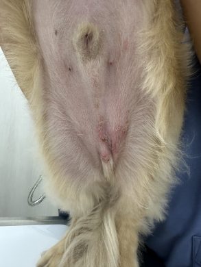 飼い主様が気づかれている皮膚病変だけにとらわれることなく、全身を確認します。
